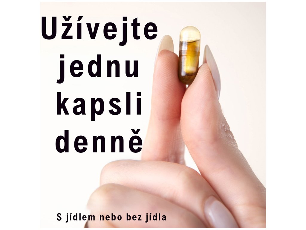 Užívejte jednu kapsli denně, s jídlem nebo bez jídla
