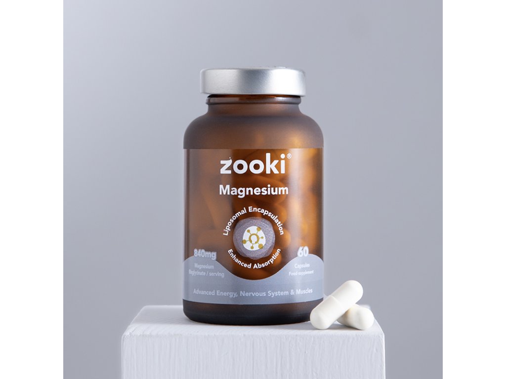 Každá kapsle Magnesium Zooki obsahuje 420 mg bisglycinátu hořečnatého, který je zdrojem 50 mg aktivního hořčíku zabaleného v lipidech pro optimální vstřebávání do krevního řečiště.